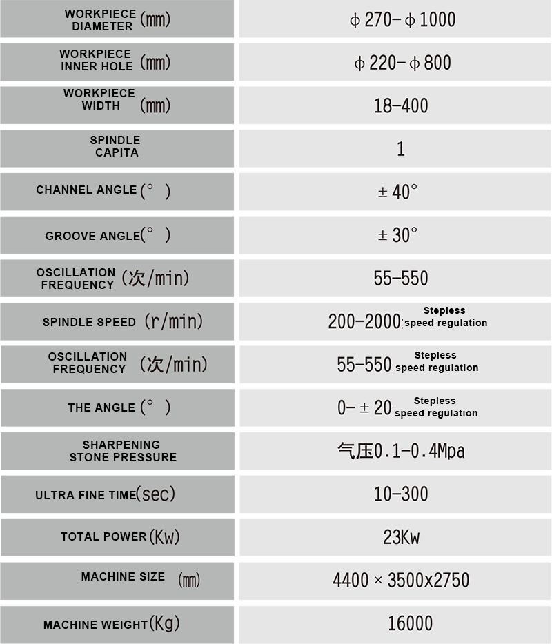 • the workpiece is superfine for three times in one station, and the whetstone is pressurized for three times. The whetstone pressure is controlled by proportional valve. Effectively improve product quality, improve processing efficiency.