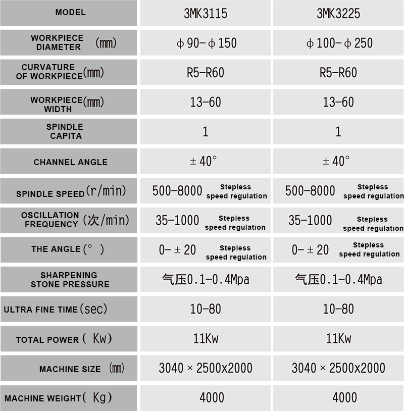• the workpiece is superfine for three times in one station, and the whetstone is coarse and fine pressurized for three times. The whetstone pressure is controlled by proportional valve to effectively improve the product quality :fi, and improve the processing efficiency.