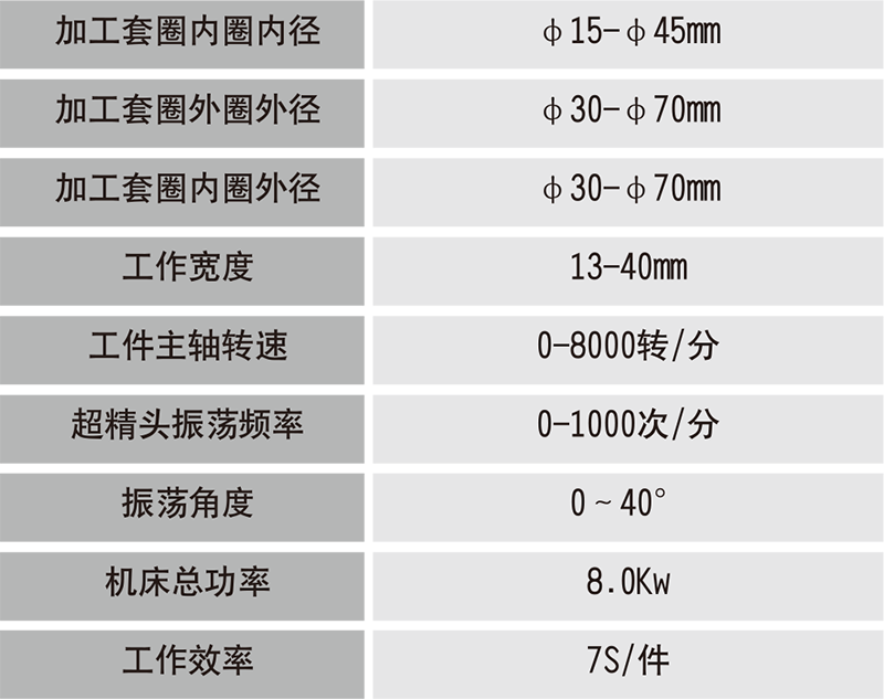 •工件均采用陶瓷无心支承、端面压紧,偏心机外预调