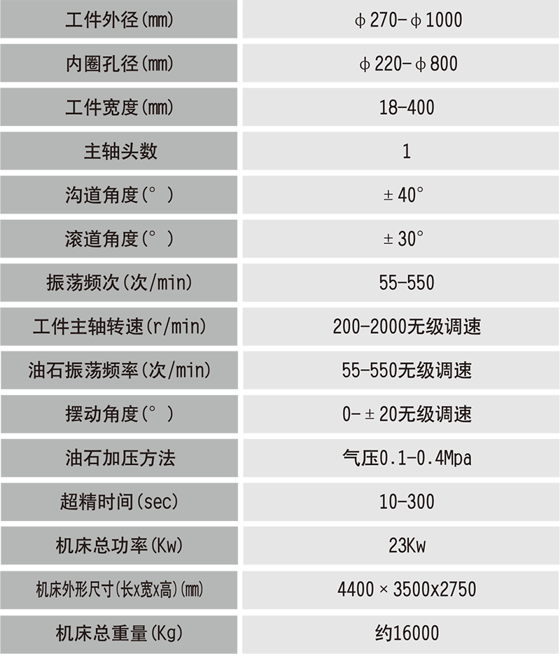 •本机床内圈采用内圈内孔定心、端面压紧的夹持方式,工件的回转精度高。外圈采用轴承支承外径、端面压紧的无心夹持方式,工件的回转精度高。